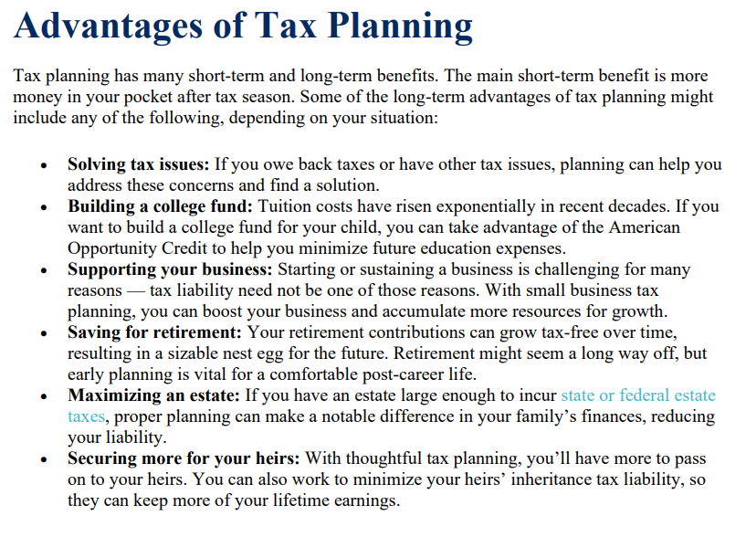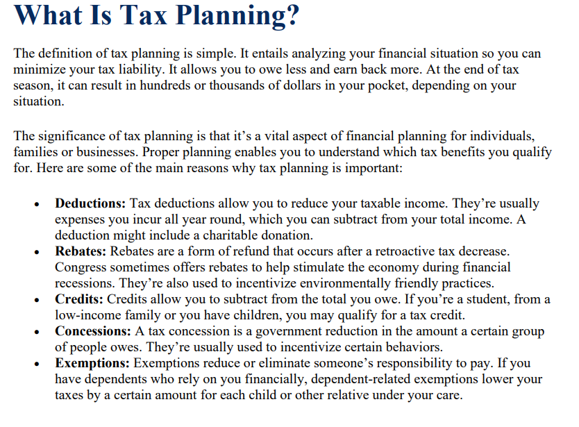 Tax Returns, Tax Planning, And Continuous Optimization.