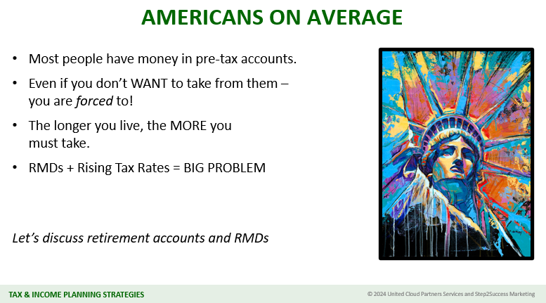 Your taxes likely will accelerate through your retirement. How will that impact your net income? You must be prepared. The best opportunity for tax savings starts in your 50s!