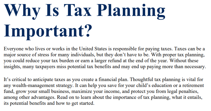 Comprehensive Best Practice Wealth Management requires Best Practice in a range of areas. The core of wealth management requires excellence in investing, planning, and taxes. Taxes are a vital component of this. This article is the third part of a full process for lifetime wellbeing in finance. Consider these three articles together: