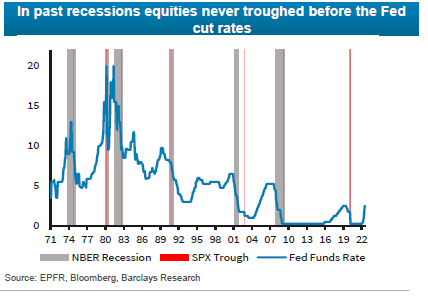 Typically stocks bottom well after the first interest rate cut, which may much longer than investors realize.