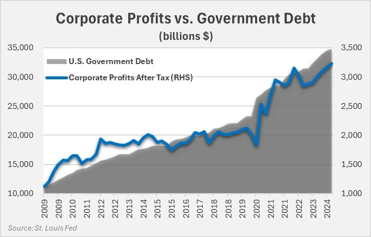 Excessive debt and money supply brings forward demand and boosts profits. Then buybacks can boost the stock price too, which is great for compensation in stock options.