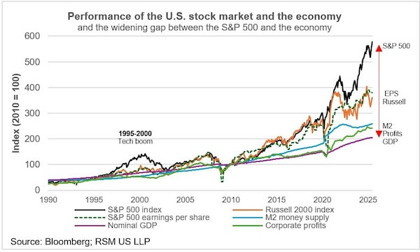 Perpetual spending excesses, central bank liquidity management, buybacks and passive pension flows have materially altered basic relationships between GDP, profits, money supply and asset prices.