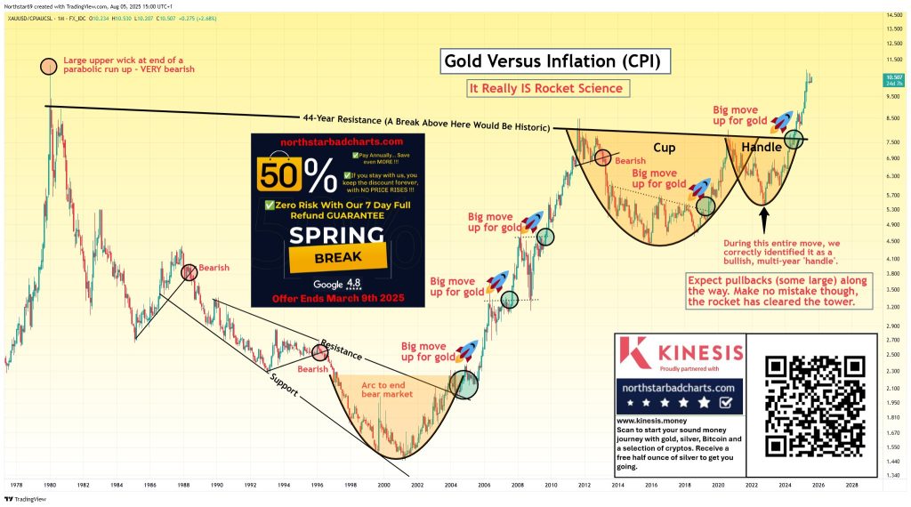 A gold strategy is key to your long-term wealth strategy. It is an incomparable asset for long-term inflation hedging. The chart above shows it is massively outperforming the CPI and so TIPS as well.