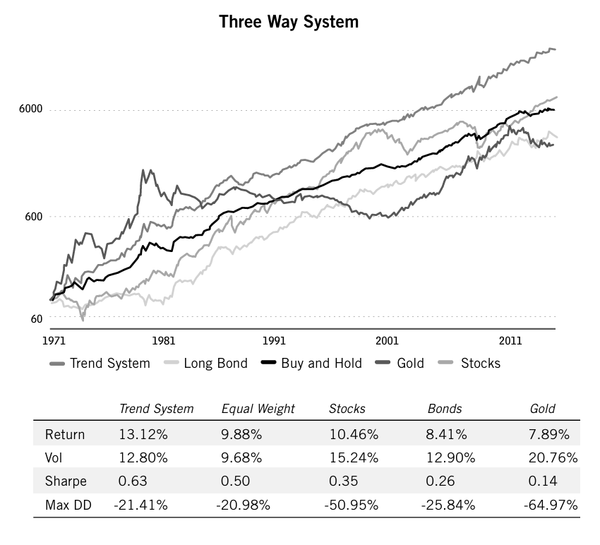 The Three Way System, which I detail in my book, shows that even a simple trend-based approach can outperform passive investing with less risk and smaller drawdowns.