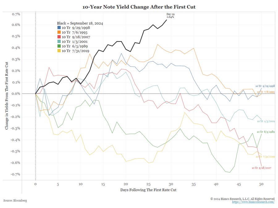7. The bond market signals the Fed made a big mistake when it cut rates by 50 bp in September.