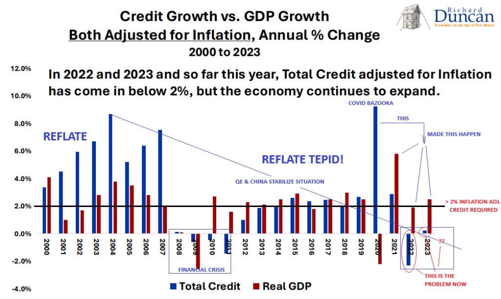 Rather than address the issues, the economy has reached the point where any attempt at austerity would now trigger a severe collapse. Yet unsustainable deficit spending is only just keeping credit growth positive.