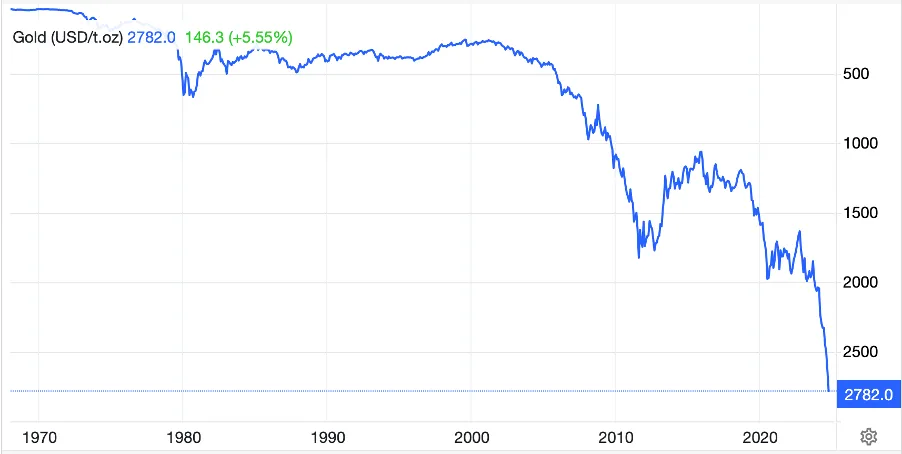 As we have been indicating for some time, it is becoming increasingly clear that policy is becoming increasingly inflationary. The bond market signals the Fed made a big mistake when it cut rates by 50 bp in September. Of course the chart above of the US dollar also tells you clearly how successful the Fed has been in “preserving the value” of the US dollar!