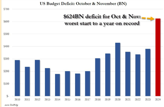 In a period of peace and recovery, a 6.4% budget deficit indicated the lowest economic growth, adjusted for debt increases since the 1930s. In underlying terms the US is chronically weak ex-debt. It is in a debt trap. The first two months of the current year were a standout record for deficit spending!