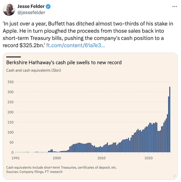 Households have never been more bullishly positioned in equities. Warren Buffet has never had more cash.