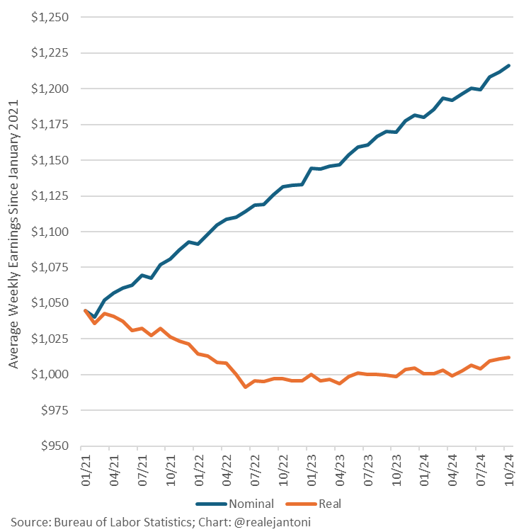 The average weekly paycheck has jumped $171.72 since Jan ’21 but inflation has devoured all that and then more: those paychecks buy $32.38 less per week, despite growing 16.4% – genuinely devastating: