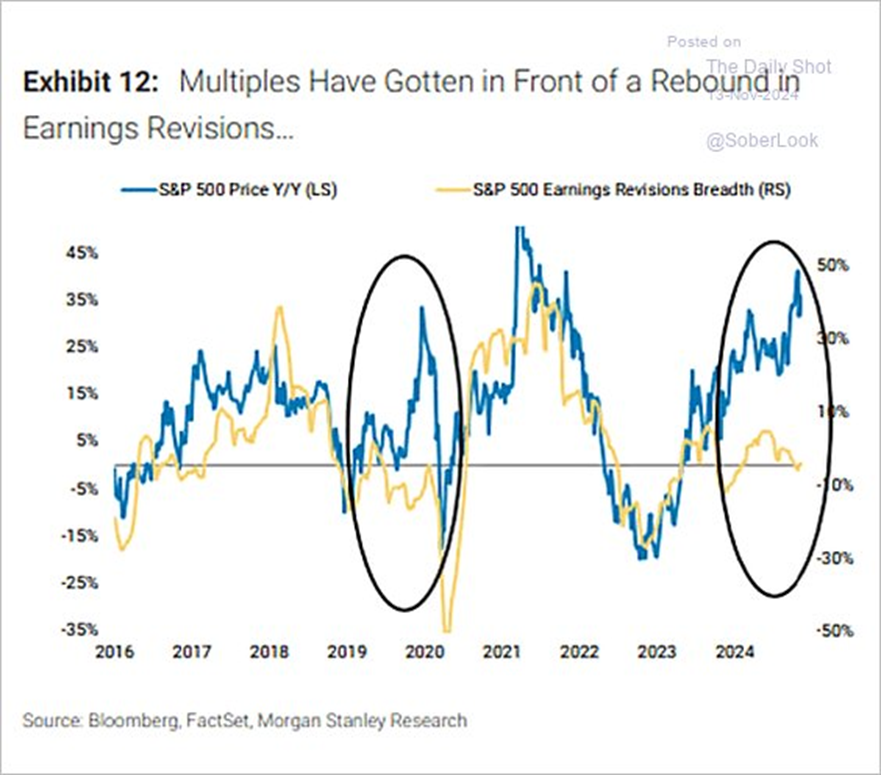 The S&P 500 has completely detached from earnings revisions.